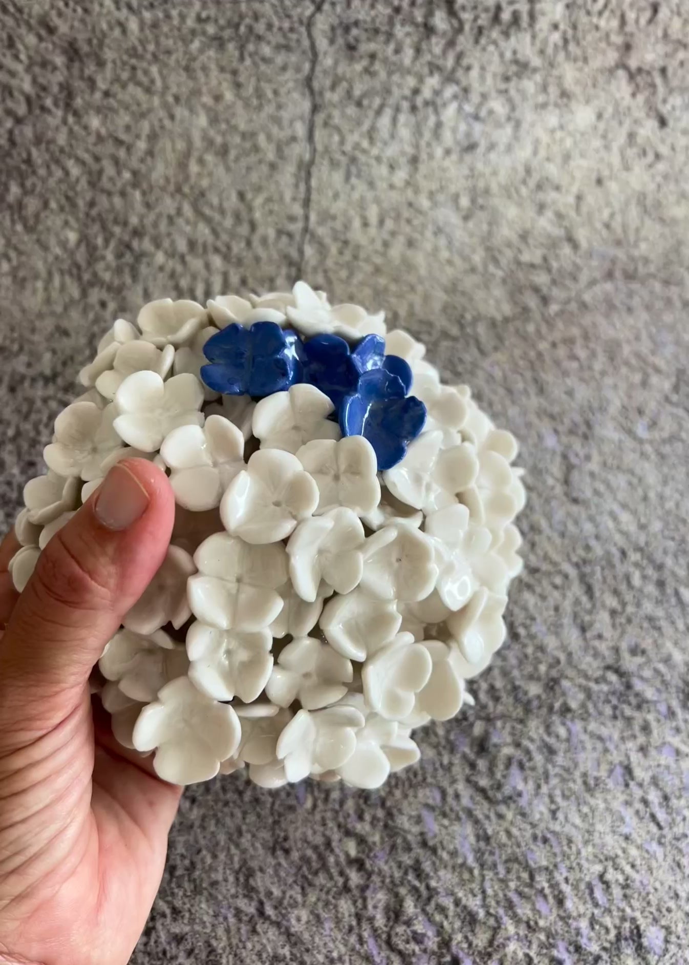 Hand-sculpted porcelain pieces come together in clusters or stand alone as individual forms. Each installation plays with repetition, rhythm, and contrast—white surfaces accented with cobalt touches—inviting quiet reflection on nature’s fragility and resilience.