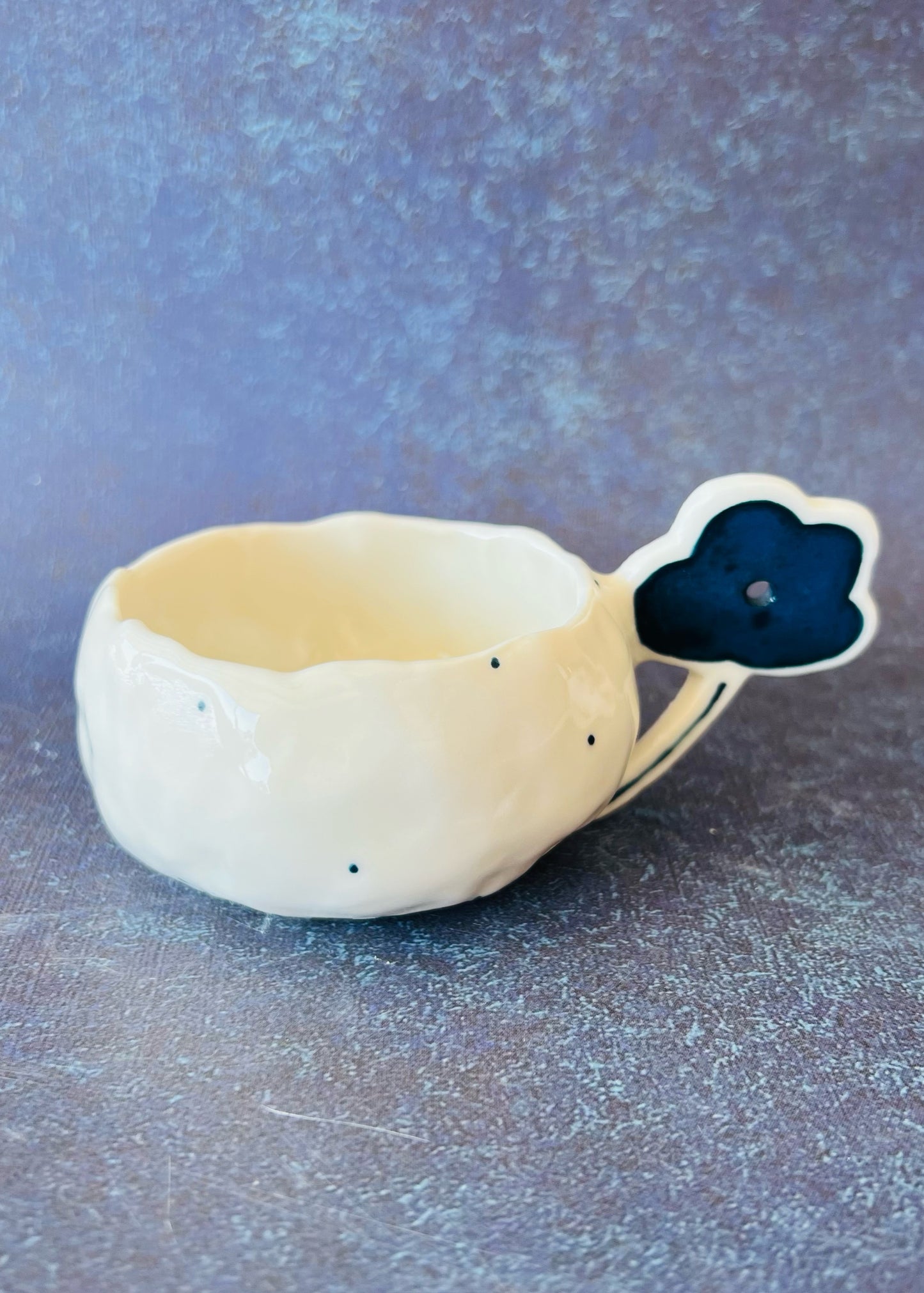 This cup bears the impression of my soul—a one-of-a-kind double espresso porcelain cup. I invite you to experience my art through these pieces, offering a glimpse into the way I see life. Each cup is a testament to the beauty of perfect imperfection, crafted with care and attention to detail.