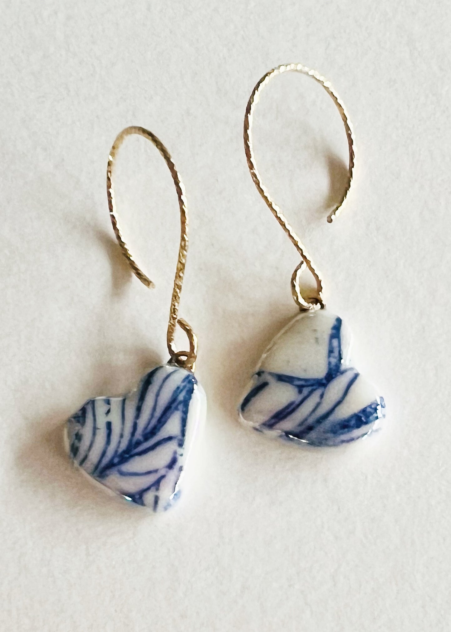 Handmade porcelain earrings with a touch of adventure - heart shaped in stunning white and accented with bold 18 karat gold. Show the world your daring side with these one-of-a-kind statement pieces!