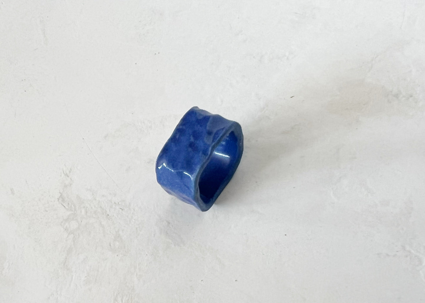 Experience tranquility with the Indigo Serenity Ring. Crafted from organic porcelain, this stunning square ring features a beautiful shade of blue reminiscent of the ocean at its most serene moments. Perfect for any finger or as a pinky ring, this piece exudes elegance and sophistication.